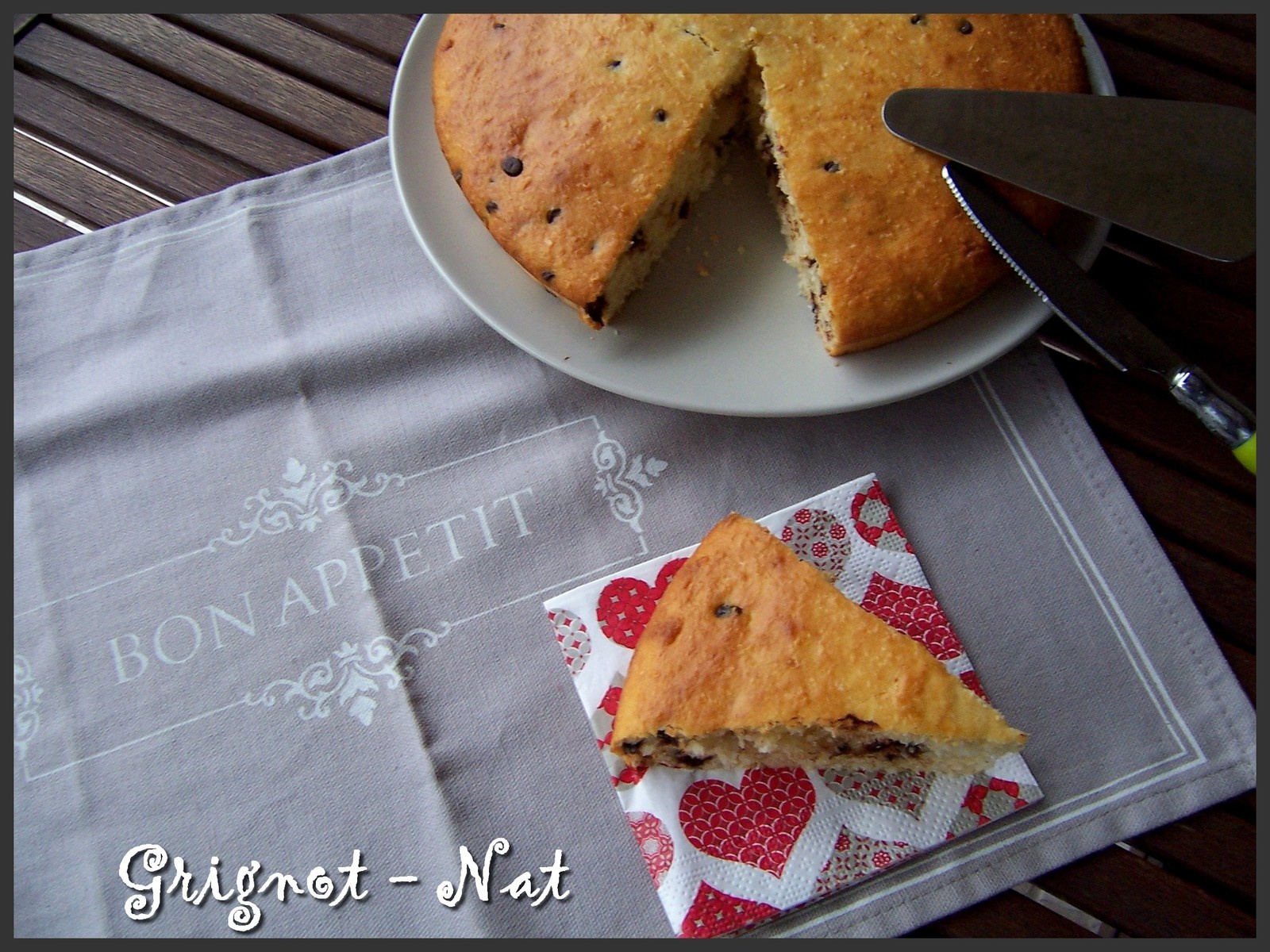 « Ce moelleux à la noix de coco et pépites de chocolat nous a beaucoup plu, il est bien moelleux et bien parfumé. Je l’ai servi en dessert accompagné d’une salade d’ananas frais, c’était très agréable, un beau mariage de saveurs !  A suivre … »