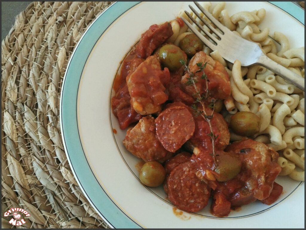 « J’aime beaucoup utilisé le chorizo en cuisine, son parfum donne du peps et du soleil aux plats. J’ai donc préparé ce filet de porc au chorizo et aux olives. Pour cela j’ai pris du filet mignon, une viande toujours tendre et moelleuse, auquel j’ai ajouté des rondelles de chorizo et des olives vertes. Un petit plat qu’on laisse mijoter tranquillement plein d’arômes et de saveurs que nous avons adoré. «