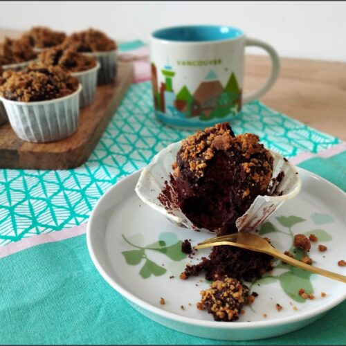 » Un petit peu de douceur pour commencer le week-end avec ces muffins au chocolat et crumble aux noisettes. Un plaisir doublement gourmand, où l’on retrouve à la fois, le moelleux du muffin avec le croustillant du crumble. L’alliance savoureuse du chocolat et de la noisette est vraiment parfaite. C’est une recette très facile à préparer qui devrait ravir toute la famille à l’heure du goûter ou du petit déjeuner ! »