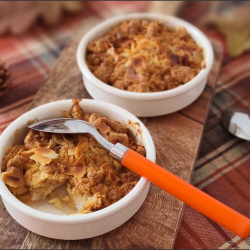 « Ce crumble aux poires au Airfryer, prêt en moins de 20minutes cuisson comprise, associe la douceur fondante des poires au croquant irrésistible de la pâte à crumble aux amandes. C’est une pure merveille ! On peut évidement préparer ce crumble avec d’autres fruits selon la saison. A suivre … »
